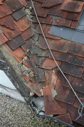The tiles have slipped out of alignment due to failure of the iron pegs.